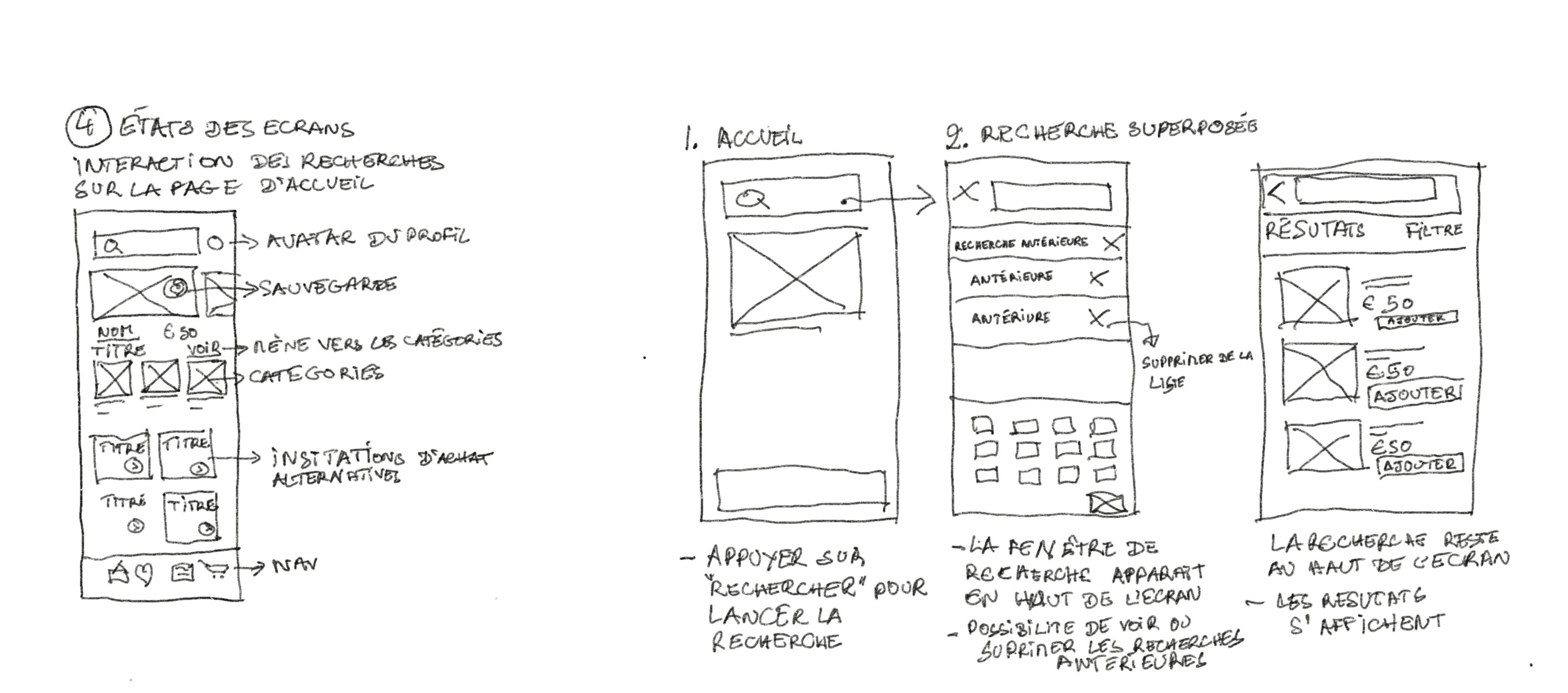 Ensuite je commence à affiner et à ajouter quelques détails, afin de pouvoir commencer à réaliser des esquisses telles que des wireframes. Elles comporteront également beaucoup plus de détails.